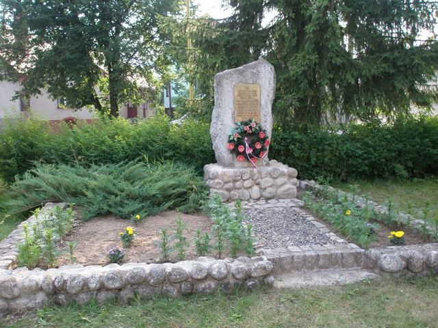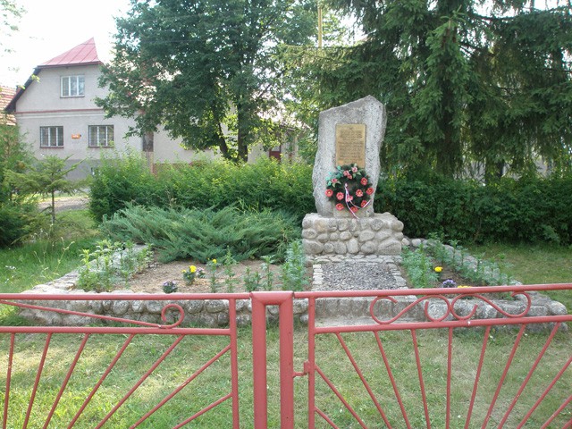 Pomník bol postavený pri príležitosti 20. výročia SNP. Projekt navrhol Ing. Kuzma z Bratislavy. Žulový kameň bol privezený z Tichej doliny. Stavbu realizovali Ján Račko /Lokaj/ a Michal Harich. Na pamätníku je tabuľa s nápisom „Pravde žil som, krivdu bil som, verne národ svoj ľúbil som“ a mená padlých hrdinov v SNP a cez druhú svetovú vojnu: Matej Majzlík, Matej Blška, Peter Hečlo, Urban Klaučo a Matej Benko