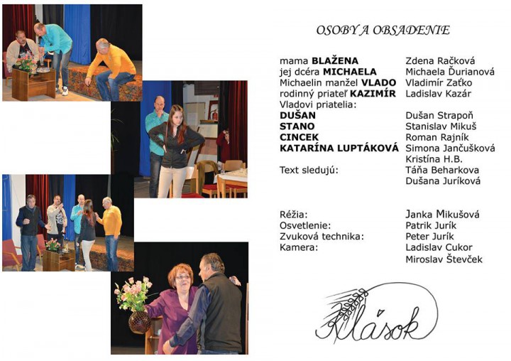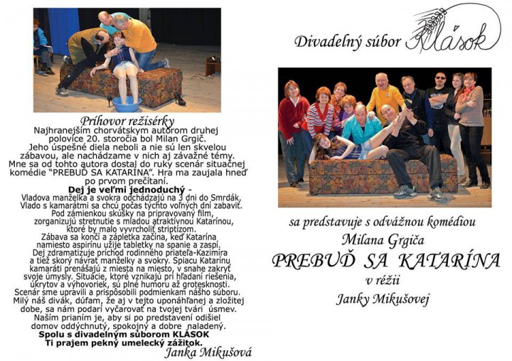 repríza odvážnej komédie Milana Grgiča 26.4.2015 o 17:00 hod. v úprave a réžii Janky Mikušovej.