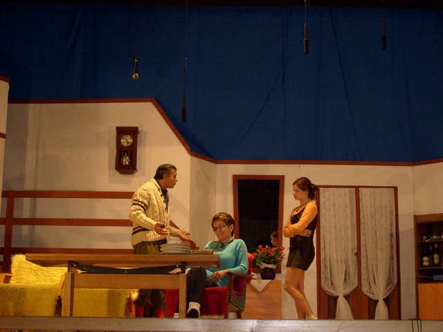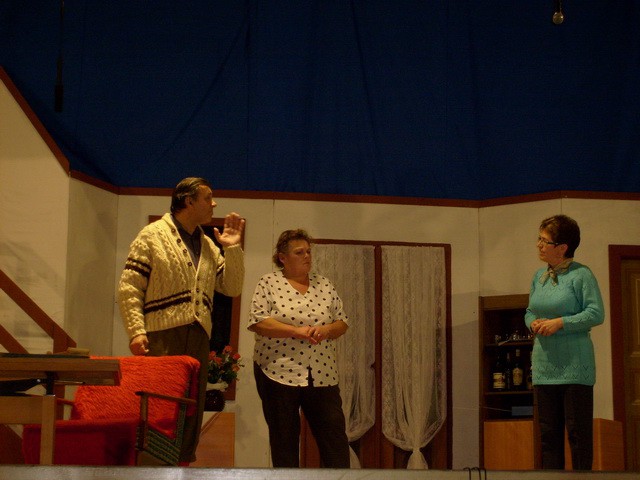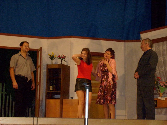 zariskovali sme a vybrali sme si hra zo súčasnosti. Dobre sme urobili. Diváci ju prijali. Opäť sme naplnili sály nielen doma, ale aj v Hybiach, Lipt. Jáne, Lipt. Kokave. Zážitkom pre nás bolo vystúpenie v Jamníku na javisku maličkom ako dlaň.